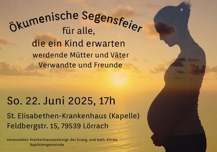 Am Sonntag, den 22. Juni 2025, um 17:00 Uhr findet in der Kapelle des St. Elisabethen-Krankenhauses Lörrach (nahe des Haupteingangs im Erdgeschoss, Feldbergstr. 15) eine Segensfeier für werdende Mütter und Väter sowie deren Verwandte und Freunde statt.